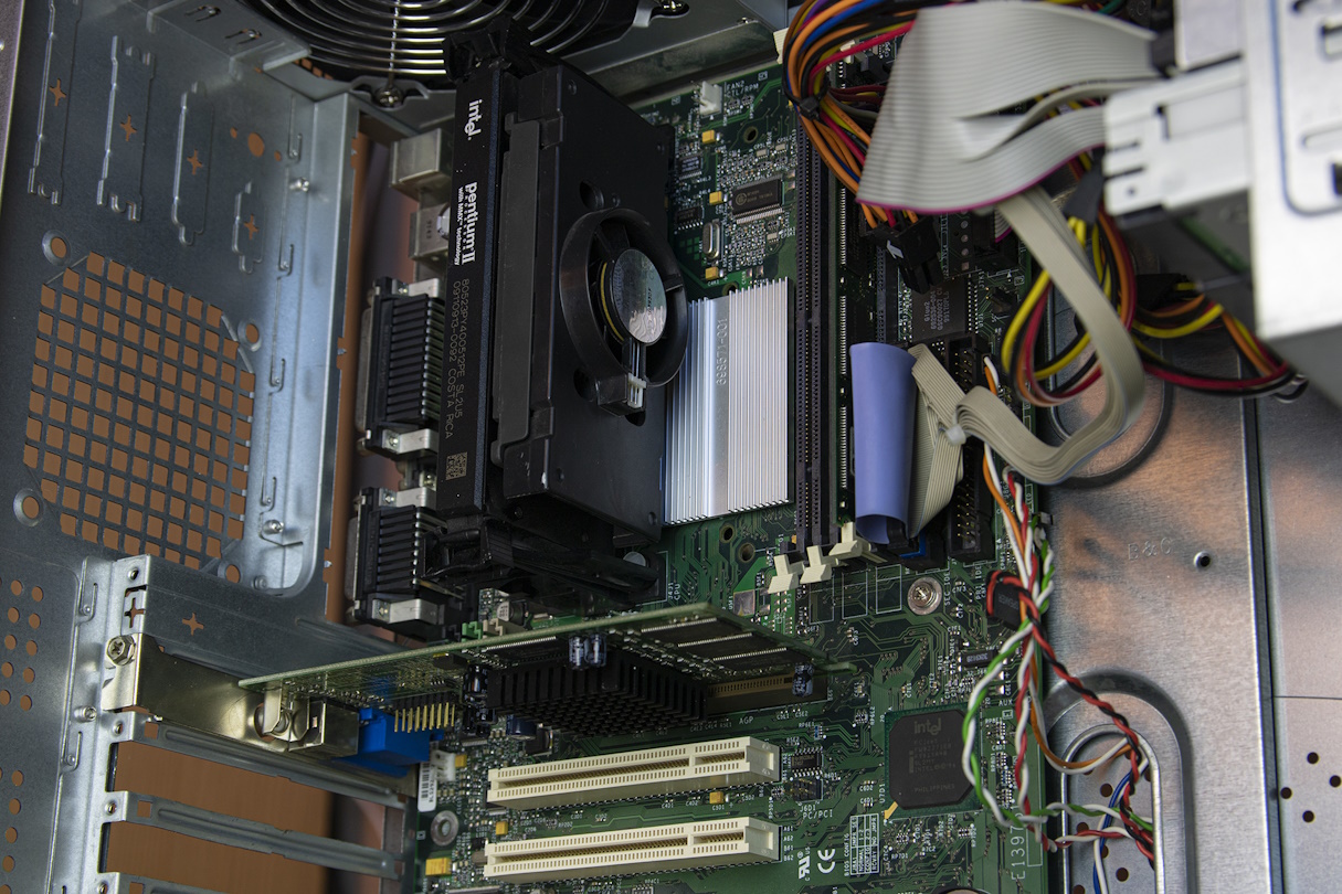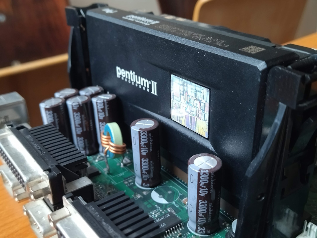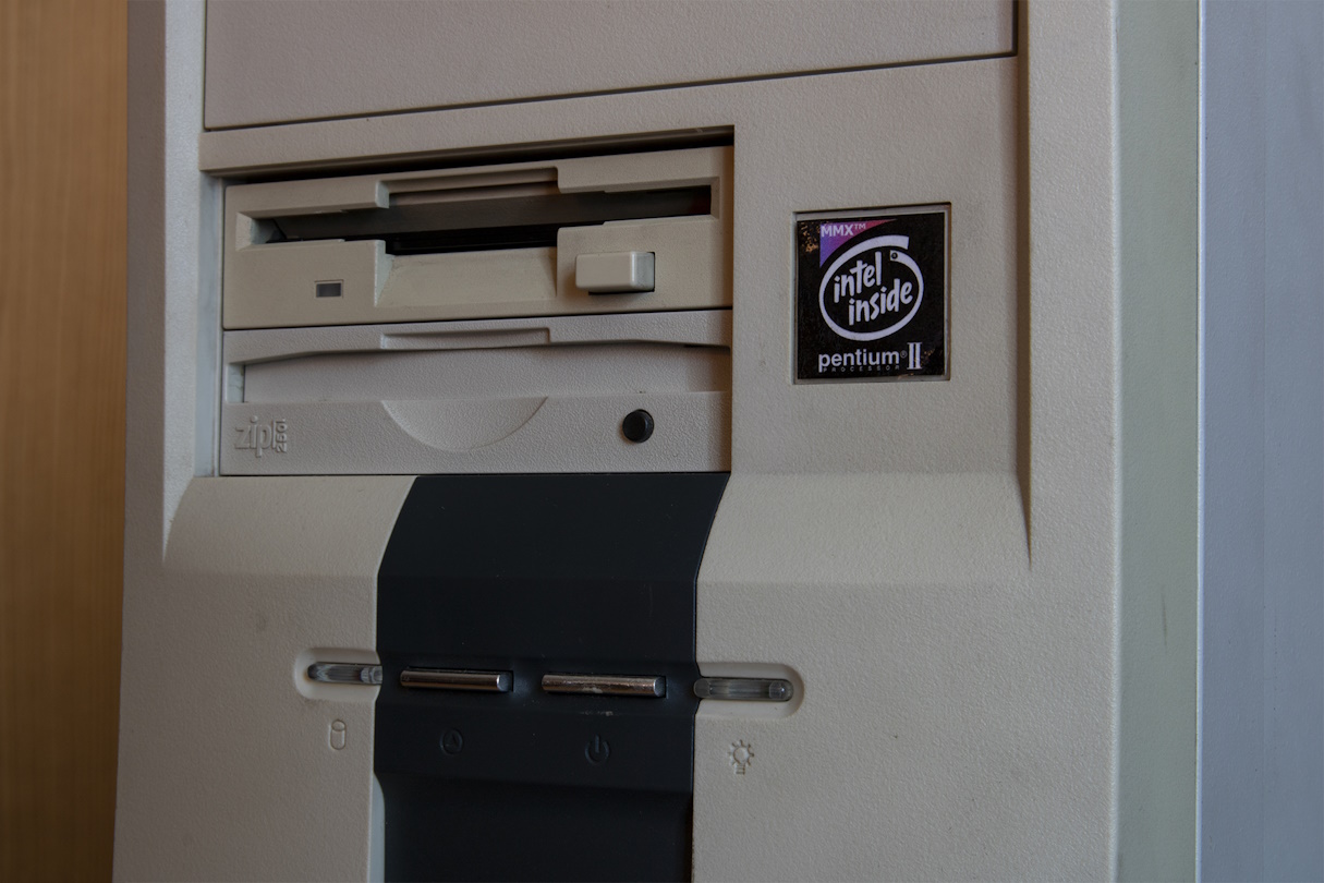 A few weeks later one of our teachers mentioned we were done with the curriculum, so he wouldn’t be holding more classes. Instead, anyone interested could join him in the old phone lab to help clear it out, since the lab was shutting down and being replaced by yet another Cisco lab. Of course, my friend and I went. From then on, we went every week, because the place was absolutely packed with retro stuff. Old PC components, vintage phones, even VHS tapes. Most of the things were interesting but not useful for us, so we had to sort through a lot. My best finds were an Intel Pentium II CPU with an Intel SE440BX-2 motherboard, a Star Wars: The Empire Strikes Back VHS tape, a KVM switch, a ball mouse, a floppy disk case, and a zip drive.