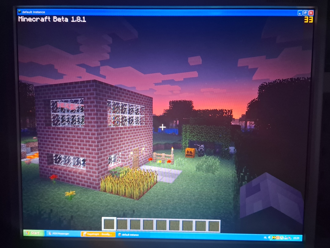 I found the right Java version to make it run, and to play we used the Betacraft launcher, first I created a singleplayer beta 1.8.1 world to test the waters, it was super nostalgic to play my most played game on the OS I first played it on. We really wanted to try the mod BetterThanAdventure but my friend's retro PC couldn't handle a modded playthrough. Since we were playing on the retro computers, we went for a Beta 1.7.3 server because thats the trendy oldschool vanilla Minecraft version nowadays. Of course, I hosted the actual server on my modern machine. And that was it, Minecraft completely took over the next few months. I’ll probably write a separate post about the world we played on and the whole beta experience later.