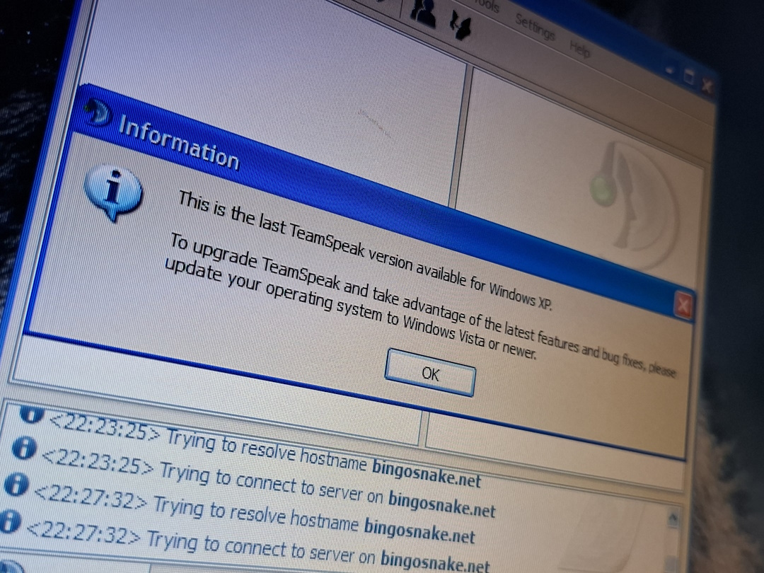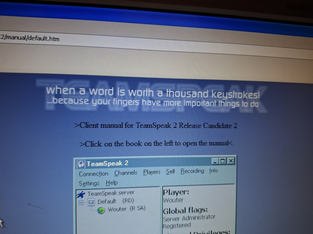 We tried running our own TS3 server, but it turned out to be impossible: no XP client and modern server combo worked together. That’s when the depressing thought hit us, XP’s days are long gone, and it’s a miracle we can still squeeze this much out of it, that so many things still work online. But for how long? Just as we were about to give up, we found forum posts revealing that there are a ton of public TS2 servers running. At first, the idea of joining a public server didn’t sound great, because anyone could pop into our channel, but when we tried it, it was an odd experience… the servers were empty. We sat in one of hundreds of empty servers for hours without anyone disturbing us. Maybe people were in hidden, private channels, or maybe there really are just hundreds of abandoned community servers still running, we still don’t really know.